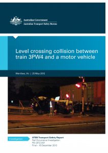 This writer has read several ATSB reports while working in the rail industry and knows firsthand of the respect the reports are given by rail operators and others. Without opening a specific report, this web summary of one, picked at random, is a useful example of the knowledge that can be made available. The investigation summary into a Level crossing collision between train 3PW4 and a motor vehicle, Werribee, Vic, on 25 May 2012 includes four elements: