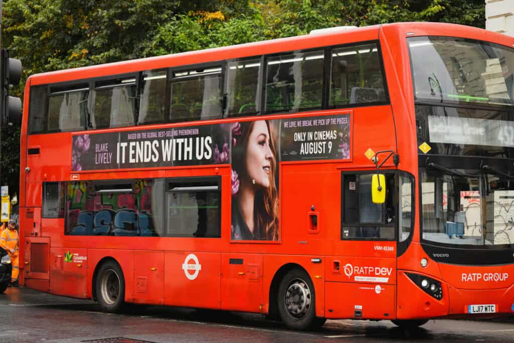 Previous Image Next Image an iconic London double-deck bus advertising Blake Lively drama film ‘It Ends with Us’ movie in West London, England, United Kingdom, Notting Hill Share this:TweetLike this:Like Loading...