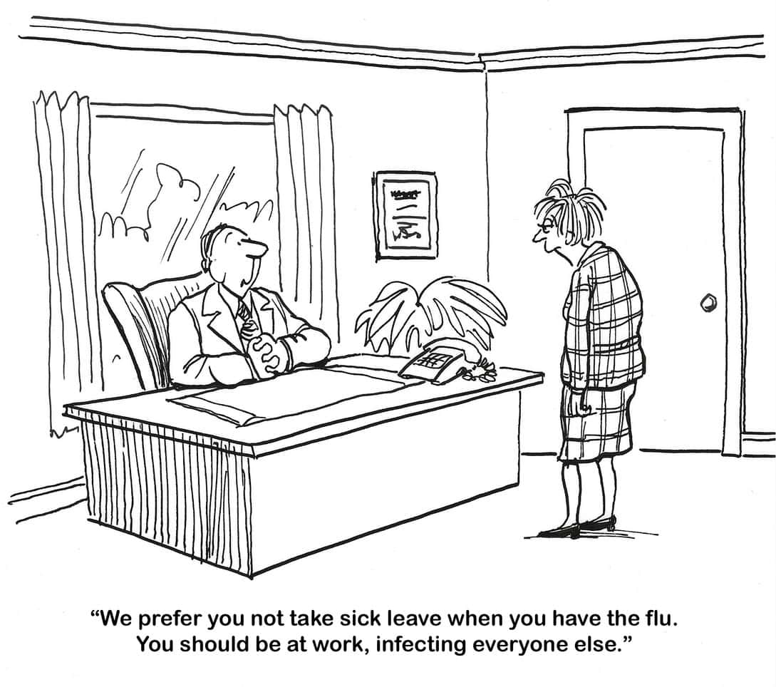 Previous Image Next Image Please Work, Even When Ill BW cartoon of a male boss saying to female worker, please work, even when you have the flu. Share this:TweetLike this:Like Loading...